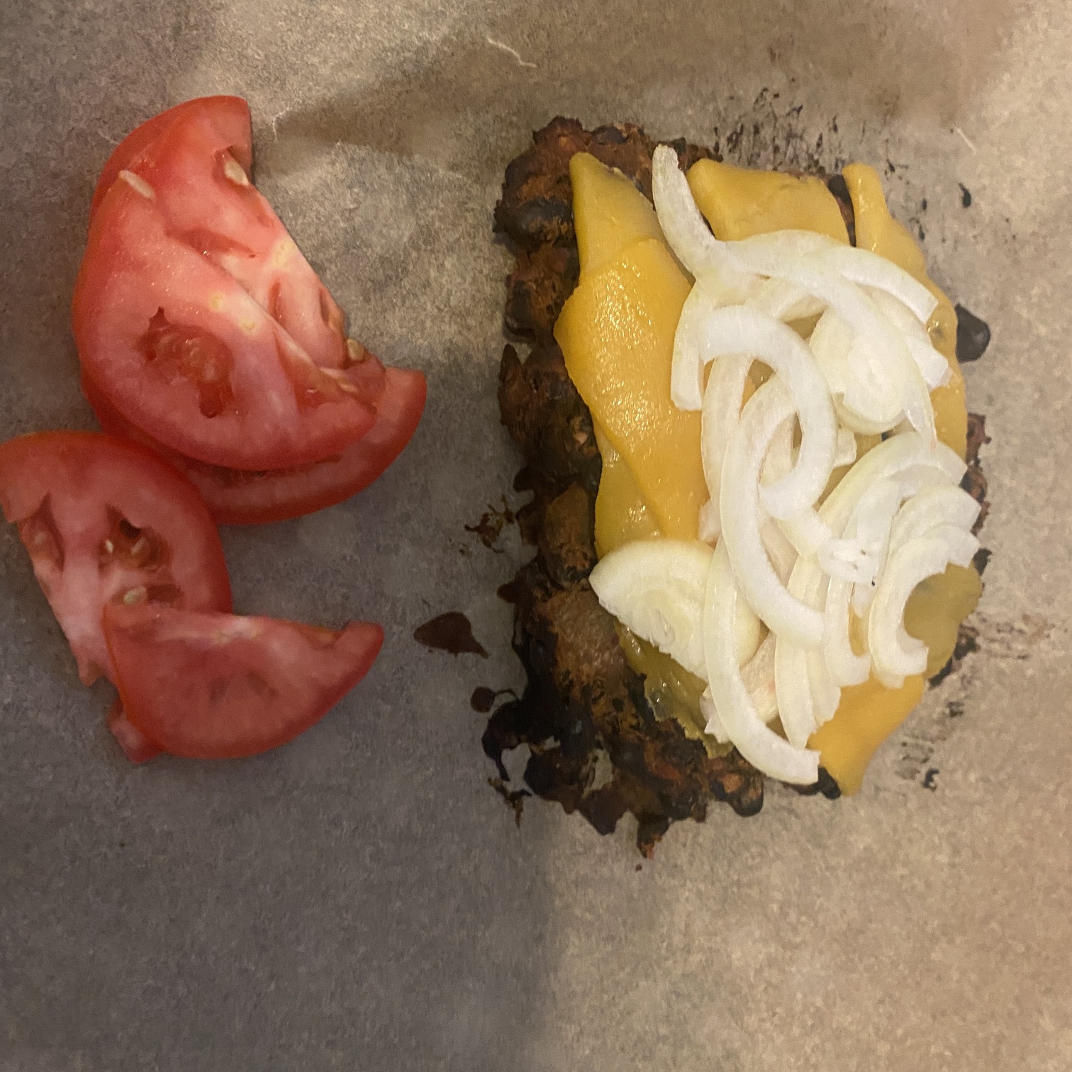 - burger pattie with vegan american cheddar