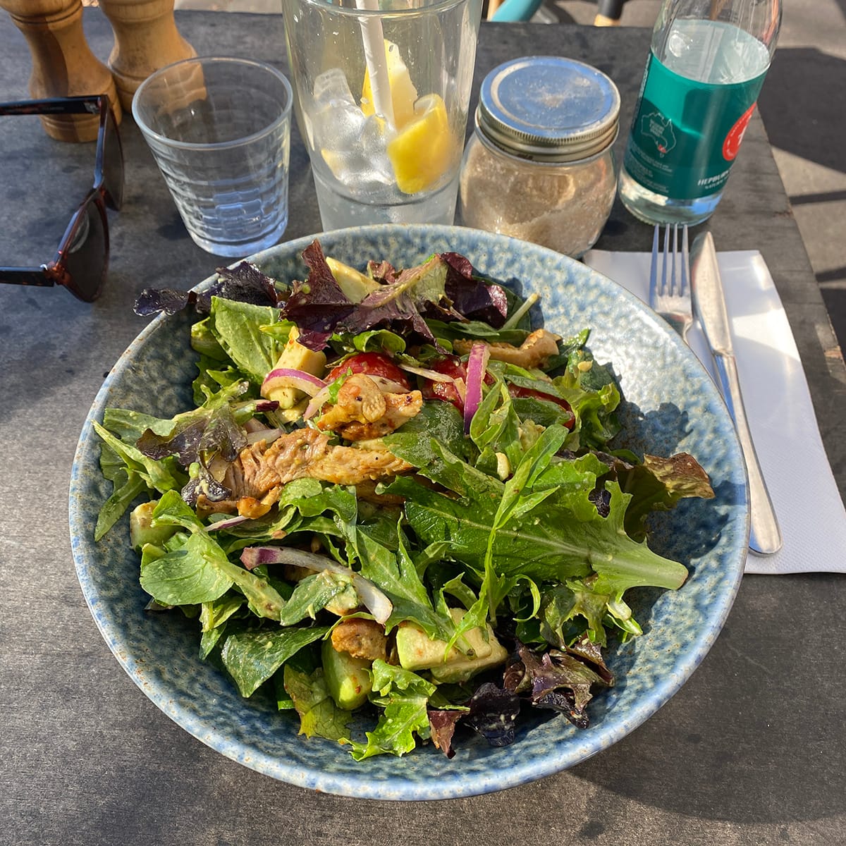 Today, I was delighted to find that amongst all the regular dishes on the Two Birds menu was something I hadn’t seen before. It was a Moroccan Chicken Salad. I was so excited. I was craving salad last night in Carlton, and although I went with Japanese, it was an easy decision to order it today.